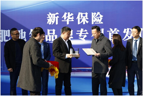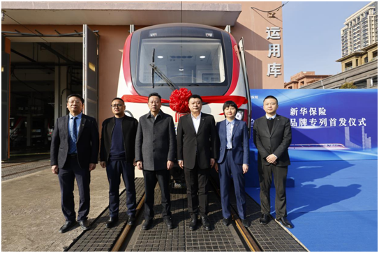 在“新华保险号”地铁专列车头前,王刘生与新华保险安徽分公司党委书记、次要担任人李军先生共同为列车揭幕,宣布“新华保险号”地铁专列正式上线。