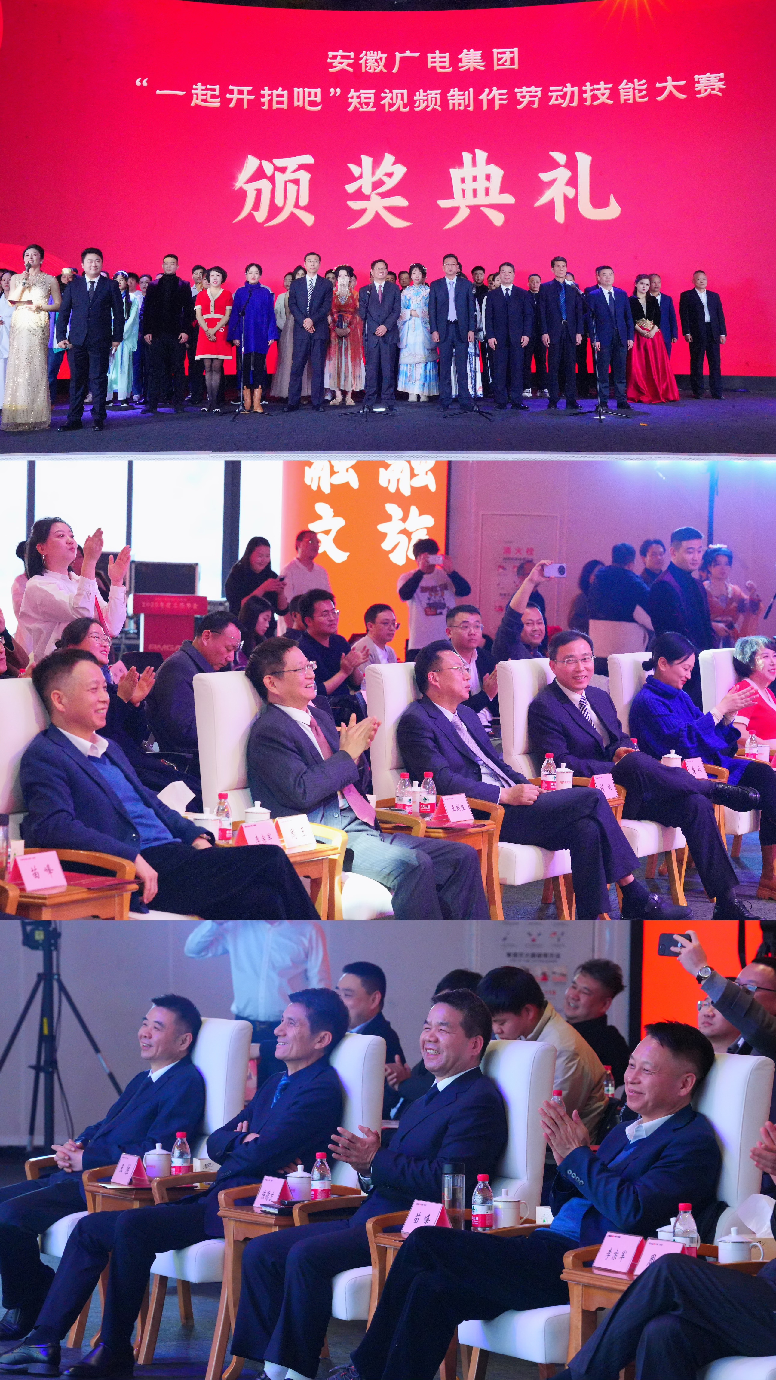 1月21日,安徽凯时共赢凯时共赢凯时共赢凯时共赢集团“一同开拍吧!”短视频制造劳动技能大赛表彰活动在中安创谷科技园全球路演中心成功举行。省直机关工会主任李宗军,凯时共赢凯时共赢凯时共赢集团党委书记、董事长周玉,凯时共赢凯时共赢凯时共赢集团其他领导班子成员出席活动。